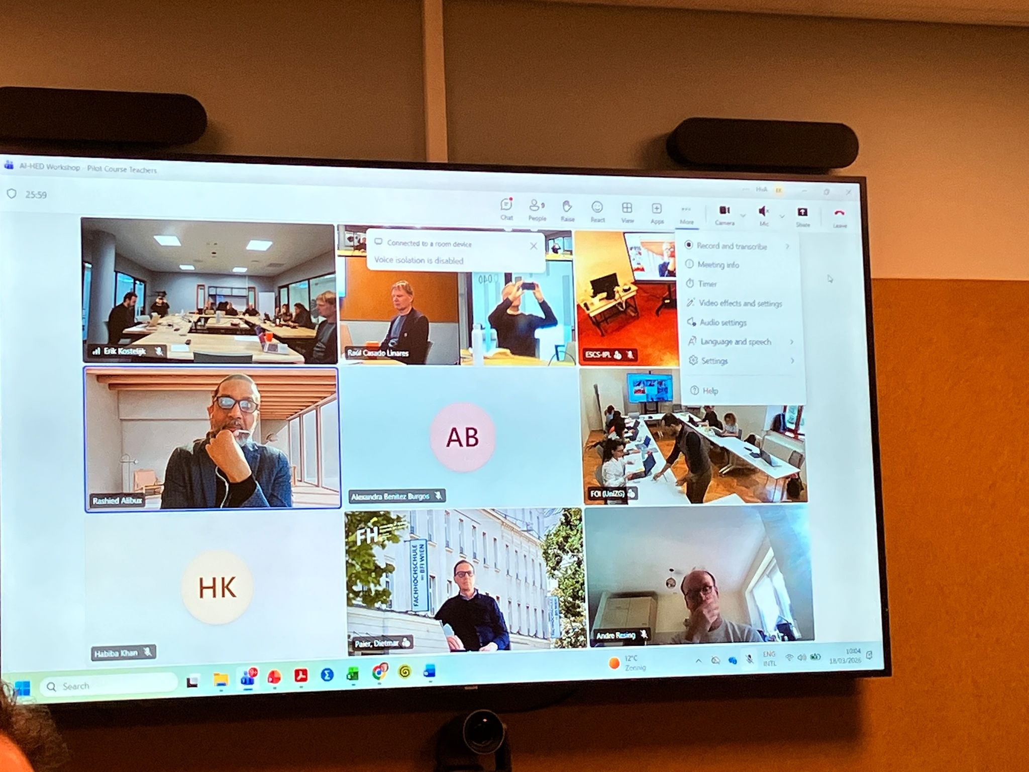 The workshop was held in a hybrid format, combining a centralised online session with local discussions across partner institutions, engaging lecturers involved in the implementation of the pilot courses.